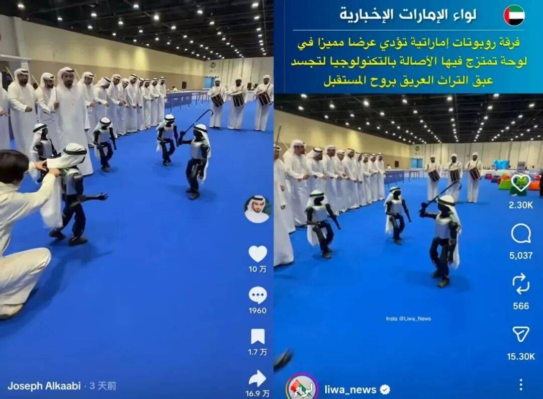 此前,在首届阿布扎比智能与自主技术周,中东土豪们与带上「头巾」的K1共跳「棍子舞」。